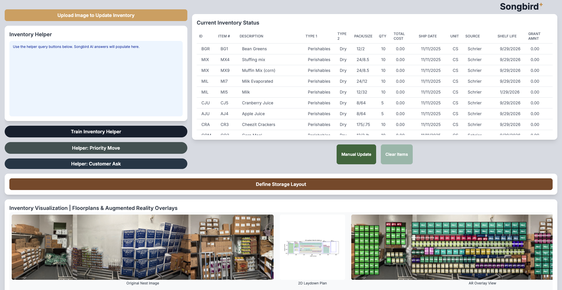 The first solution from Songbird Rivers is an inventory support system for perishable assets - food, beverages, medicine. The origins of the system is in support service of New York City food pantries combating hunger and food insecure.